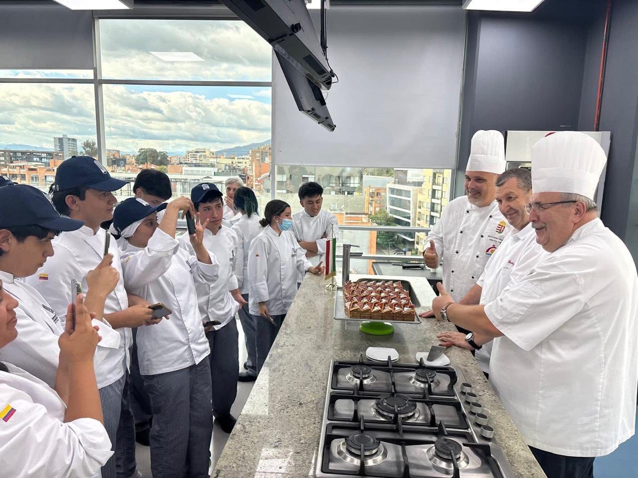 Gulyásleves, paprikás csirke és dobostorta a bogotái Mariano Moreno Gasztronómiai Főiskolán. Prohászka Béla, Mucsi Balázs mesterszakácsok és Balogh László cukrász, az idei év országtortájának az alkotója két master classt tartott a kolumbiai diákoknak. Képek az előkészületektől, az erős pista kóstoláson keresztül a tökéletes “dob” elkészítéséig. Köszönjük az Agrárminisztérium Hungarikum Főosztályának a program megvalósításához nyújtott hatalmas segítséget. Enélkül ez a program nem jöhetett volna létre.